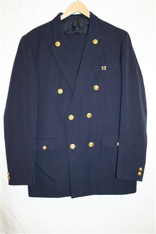 Búningur strætisvagnabílstjóra nr. 52, jakki, vesti, buxur og húfa.