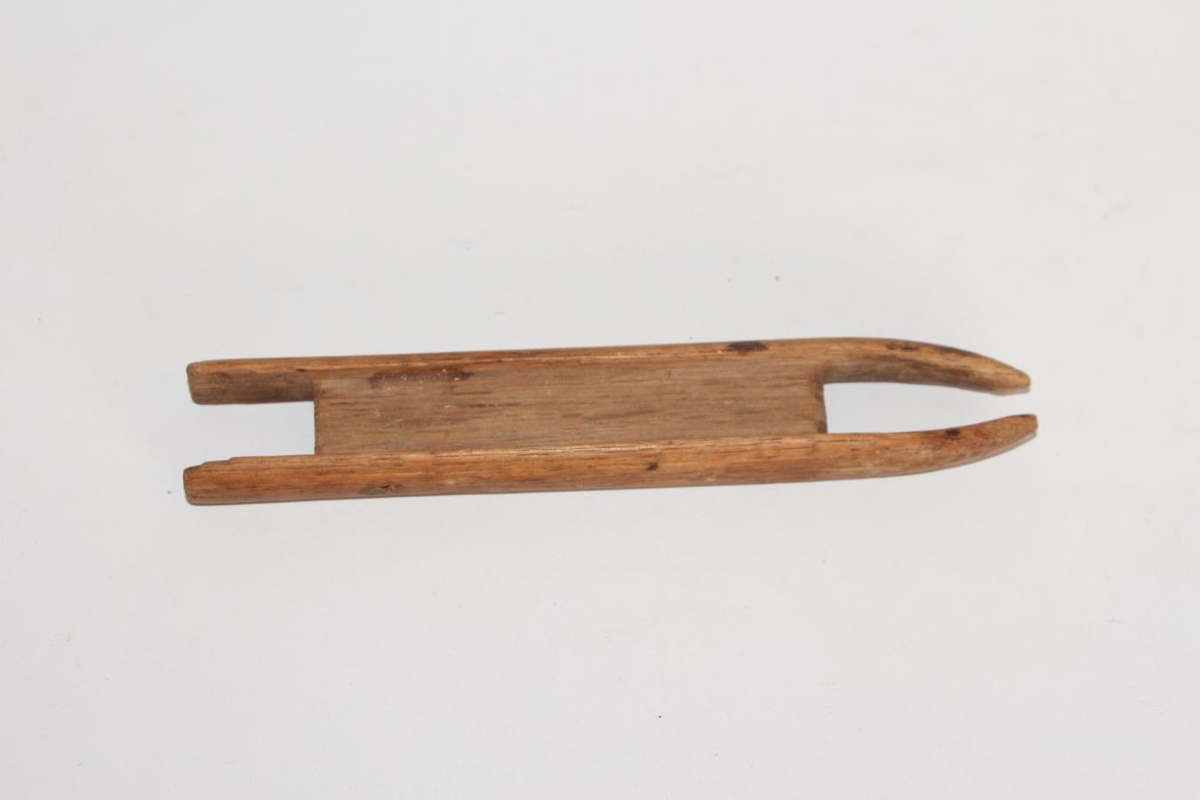 Netanál úr tré. L. 17,5 cm. Br. 3 cm. Þ. 1,5 cm. Trénagli er rekinn inn í miðju á báðum hliðum. Mjókkar fram í endann. Þynnst í miðjunni. Aðeins brotin fremst.