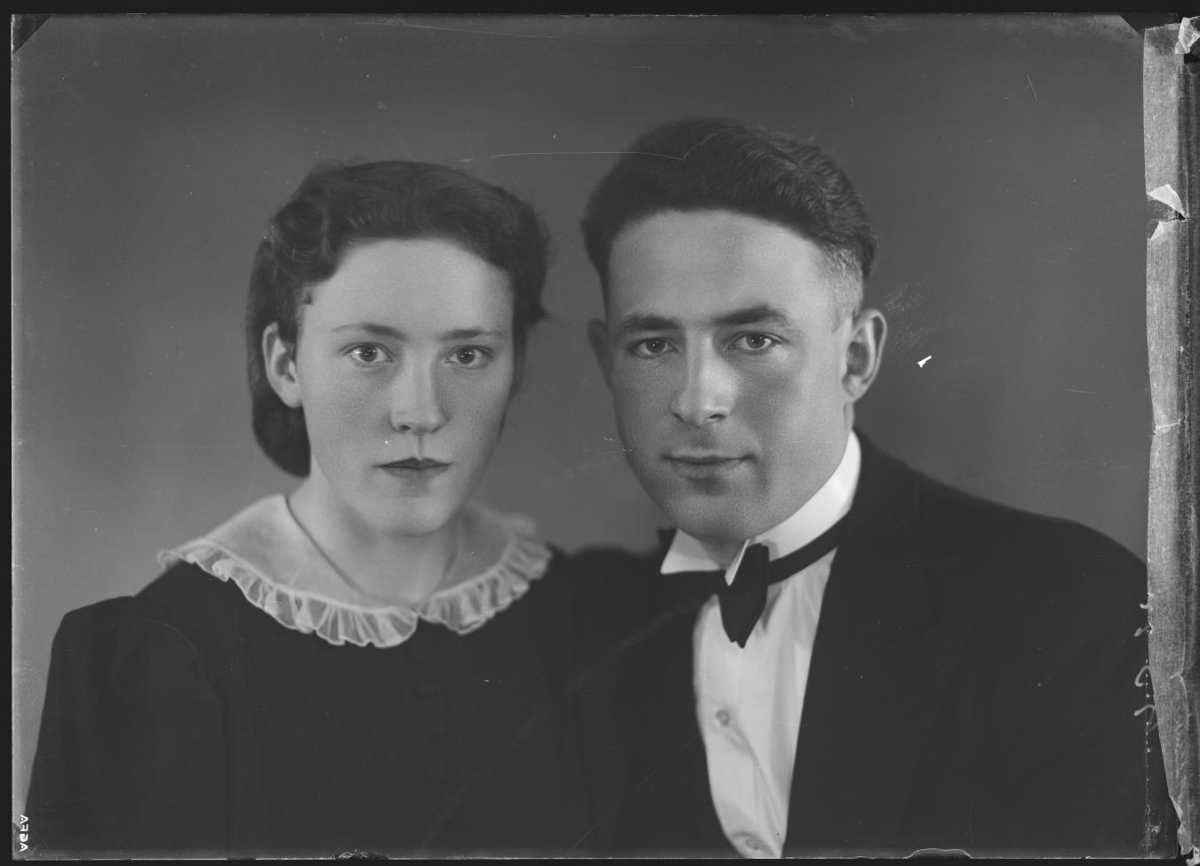 „Þetta er brúðarmynd af Helgu Sigríði Eysteinsdóttur (f. 2.7.1916, d. 9.9.2009) og Ólafi Þorlákssyni (f. 18.2.1913, d. 23.11.2006). Þau bjuggu á Hrauni í Ölfusi.“ (KG 2024)
