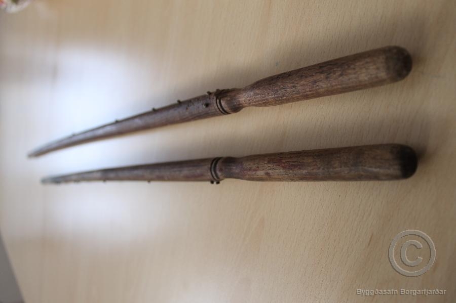 Mælikvarði 76 cm langur. Kom ásamt öðrum slíkum (úr Kiddabúð) og er sá 63 cm (63 cm).