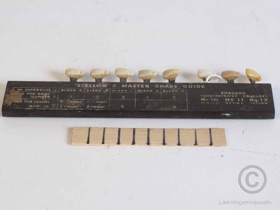 Á spjaldinu eru 8 tannsýnishorn í mismunandi litum.