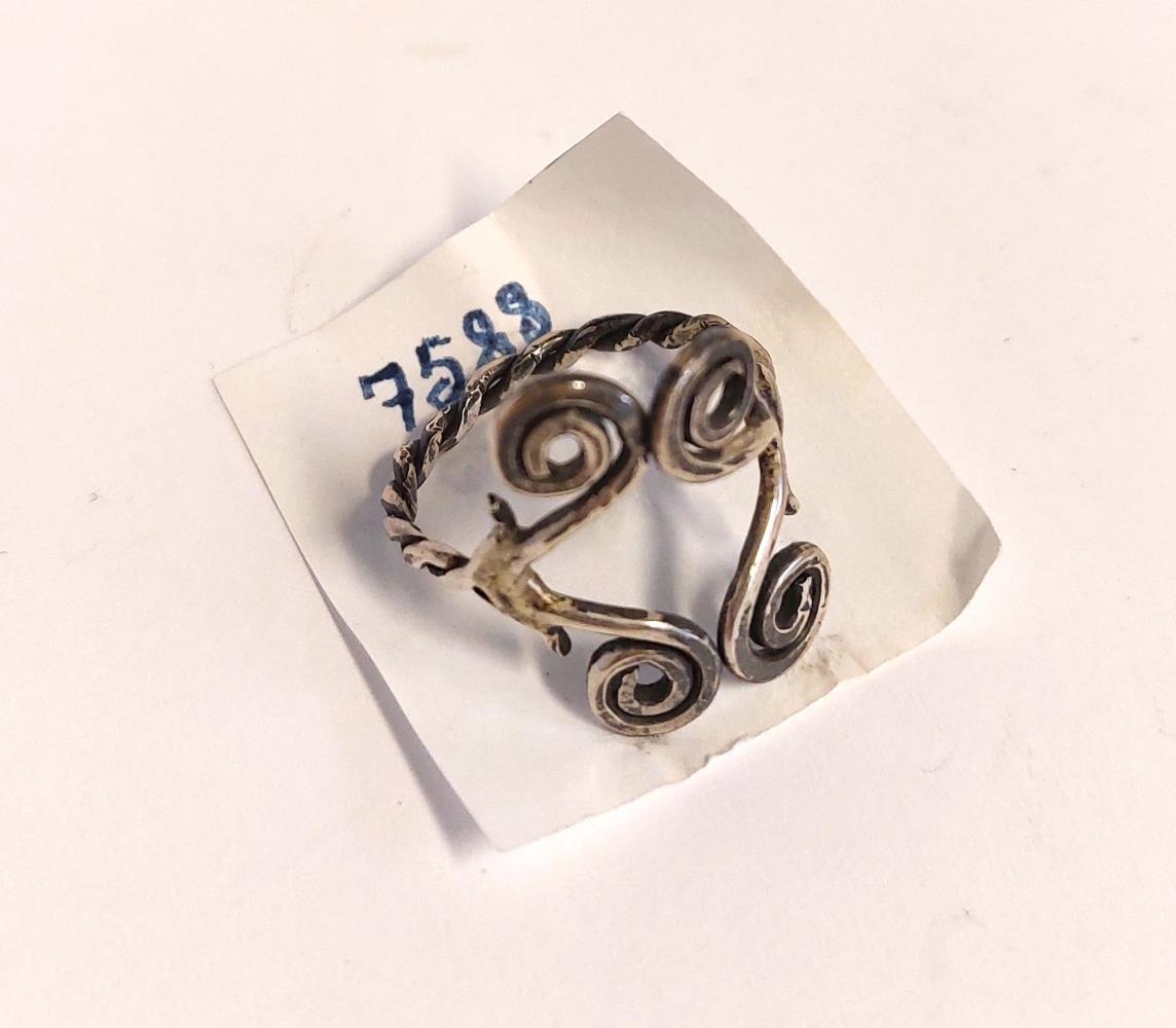 Fingurhringur úr silfri, smíðaður af gefanda í Skógasafni á safnadaginn í júlí 2009. Haglega gerður gripur. Jens er ólærður silfursmiður.