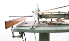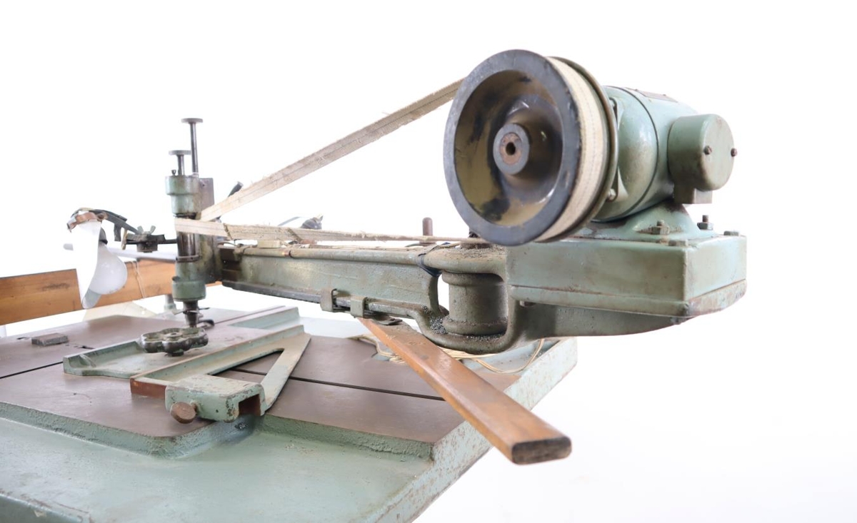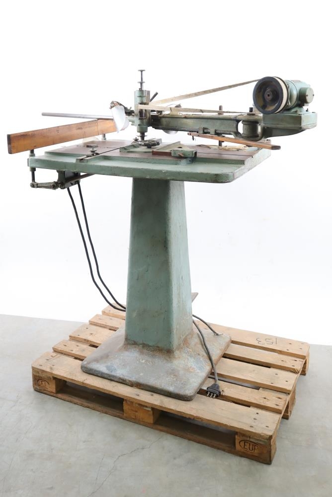 Grafvél af AEG gerð, sem sker út letur / fræsa klisjur í prentvinnslu. Fótur og borðplata, armur á plötunni fyrir grefil og mótor ofan á. Tækið er beltisknúið og við enda armsins eru tvö perustæði. Armar ganga út af því til þess að stjórna því.