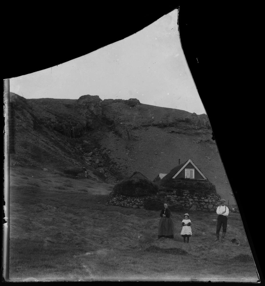 „Þetta er bærinn Strýta í Hamarsfirði. Líklega er það Ólöf Finnsdóttir, móðir listamannanna Finns og Ríkarðs Jónssonar, sem stendur þarna úti ásamt einhverjum tveimur öðrum.“ (KI 2020)