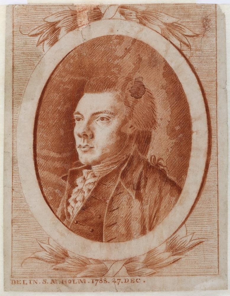 4344. Rauðkrítarmynd af Guðmundur sýslumanni Péturssyni. Undir myndinni er skrifað á latínu: "DELIN. S.M.HOLM.1788.27.DEC." sem einfaldlega þýðir teiknað af Sæmundi Hólm 26. desember 1788.