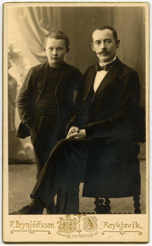 Frá Stórholti, bóndi og síðar bæjarfógetaskrifari og drengur. Ljósm. vis.: Jón Thorarensen frá