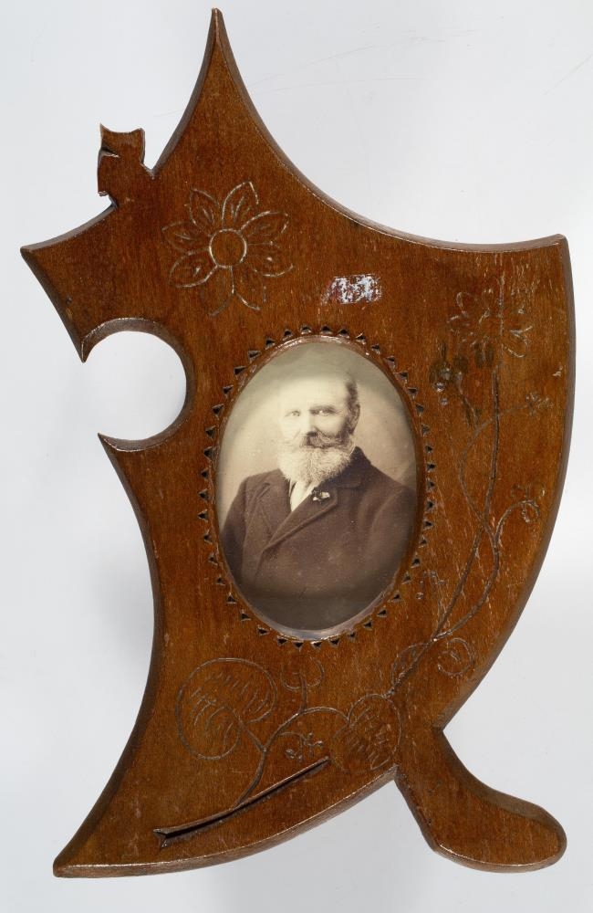 Gunnar var ömmubróðir gefanda, f. 27.2.1845, d. 25.8,1932. Ljósmynd vis. í sérkennilegum útskornum