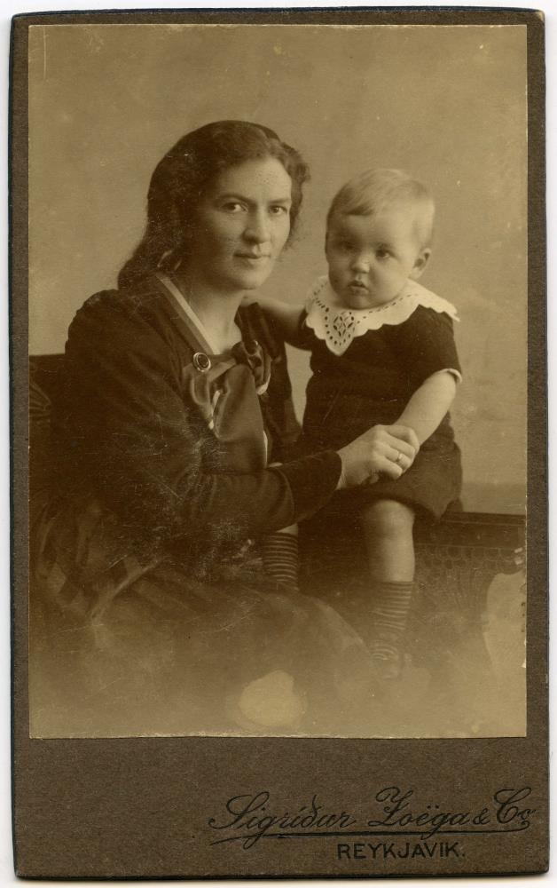 Ingibjörg Pétursdóttir og sonur hennar Pétur Leifsson (síðar ljósmyndari)