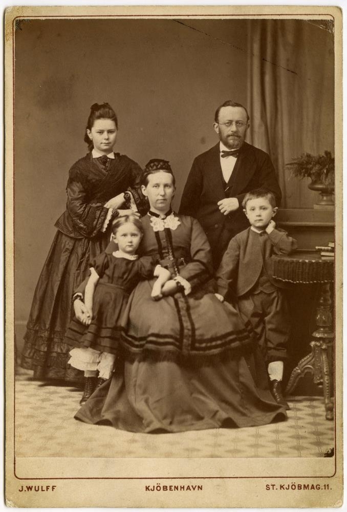 kona hans og börn þeirra, Ditlev og Anna og fósturdóttir, nú frú Theissen,