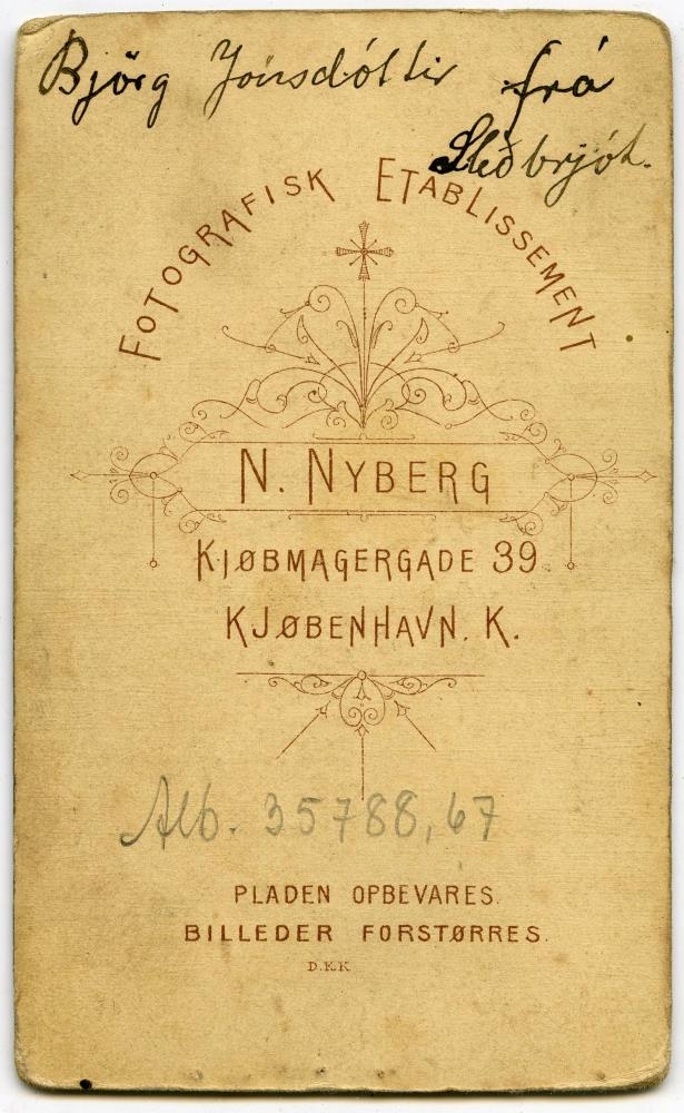 Björg Jónsdóttir (Björg Thorsteinsson). Foreldrar hennar voru Guðrún Jónsdóttir og Jón Jónsson, alþingismaður á Sleðbrjót. Maður hennar var Bjarni Þorsteinsson, ljósmyndari. Þau giftust á Íslandi árið 1897 en fluttu til Vesturheims árið 1903. Þau bjuggu fyrst í Winnipeg, fluttust svo til Selkirk 1907 og bjuggu þar til ársins 1939 en þá fluttu þau aftur til Winnipeg.