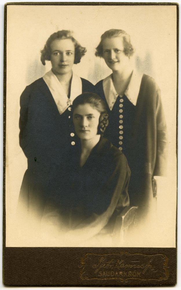 Sigríður Theódórsdóttir ásamt tveimur öðrum stúlkum ónafngreindum