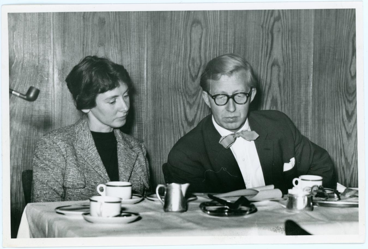 Björn Th Björnsson og kona hans, Ásgerður Ester Búadóttir veflistamaður. Ljósm 11,6 x 17 cm.