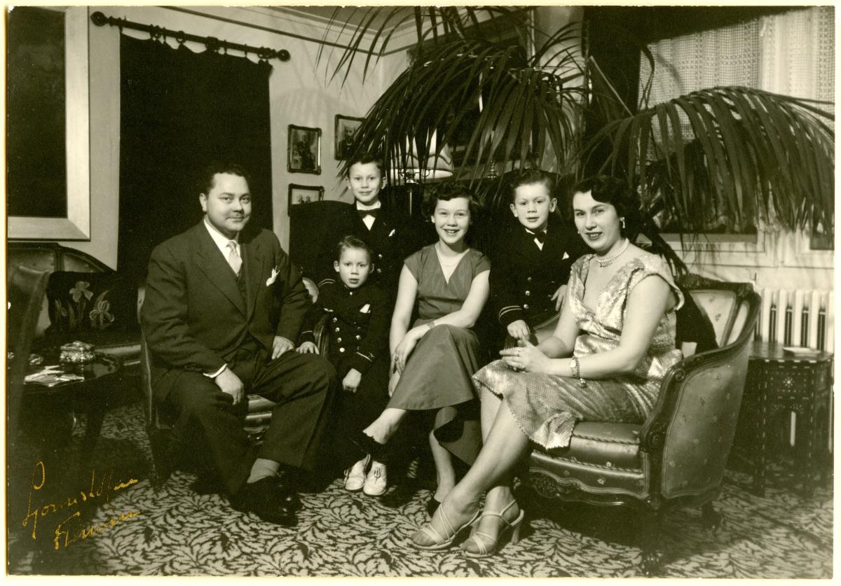 Hópm., hjón og 4 börn. Ljósm. 11,2 x 16,2 cm., spjald 18 x 24 cm: Guðni Jónsson (Belgjagerðinni), k.h. Halldóra Þorgilsdóttir og fjögur börn þeirra.