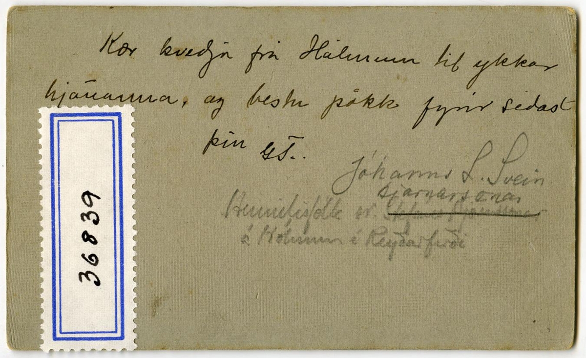 og seinni k.h. Guðrúnar Torfadóttur. Tilskrif undirritað G.T. á bakhlið,