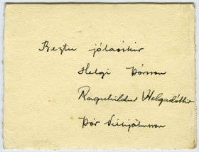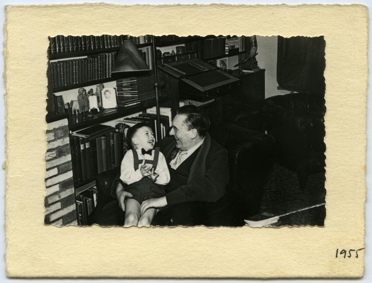 Vilhjálmur Þ. Gíslason með sonarson sinn, Helga Þórsson (barn), síðar tölvufræðing. Ljósm.: 6,6 x 9,6 cm., límd á tvöfalt spjald 9,6 x 12,6 cm: