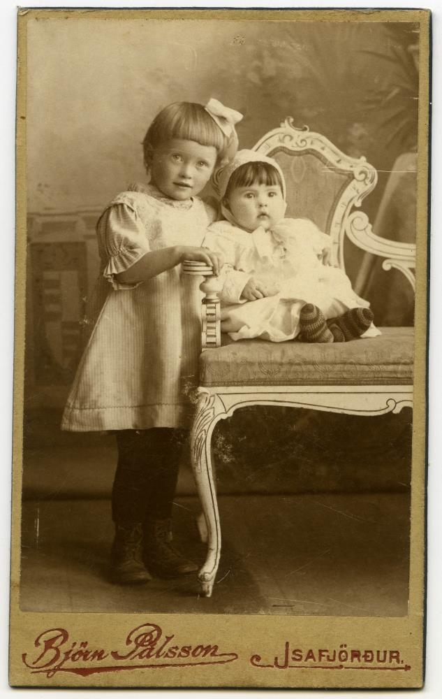 Og systir henar Stefanía, dætur Sig. Sigurðars. sýslumanns. Ljósm. vis.: 2 telpur, Margrét