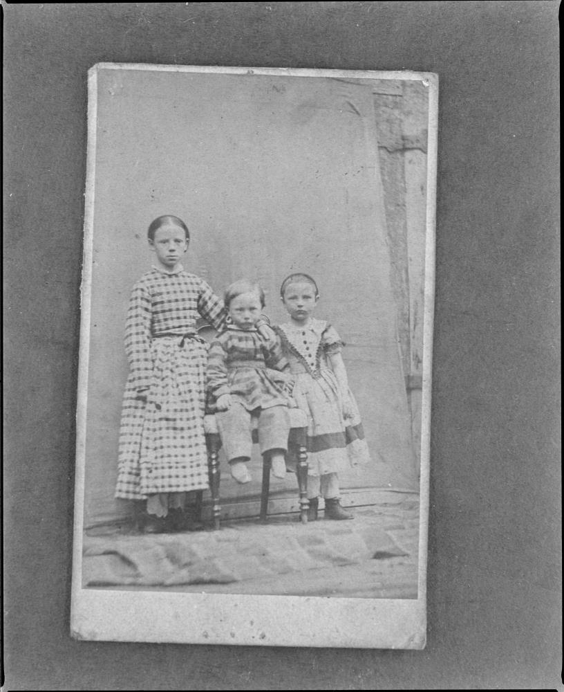 3 saman. Hópmynd, 3 börn, m. a. Gunnþórunn Ingibjörg Jónsdóttir fósturdóttir Halldórs Jónssonar prests á Hofi.