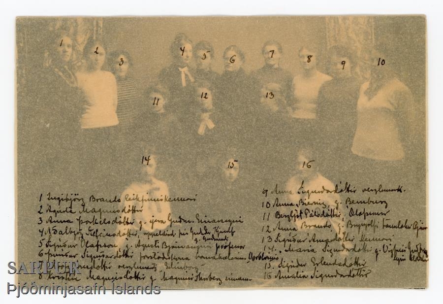 Hópmynd. Leikfimisnemendur ungfrú Ingibjargar Brands í Reykjavík.