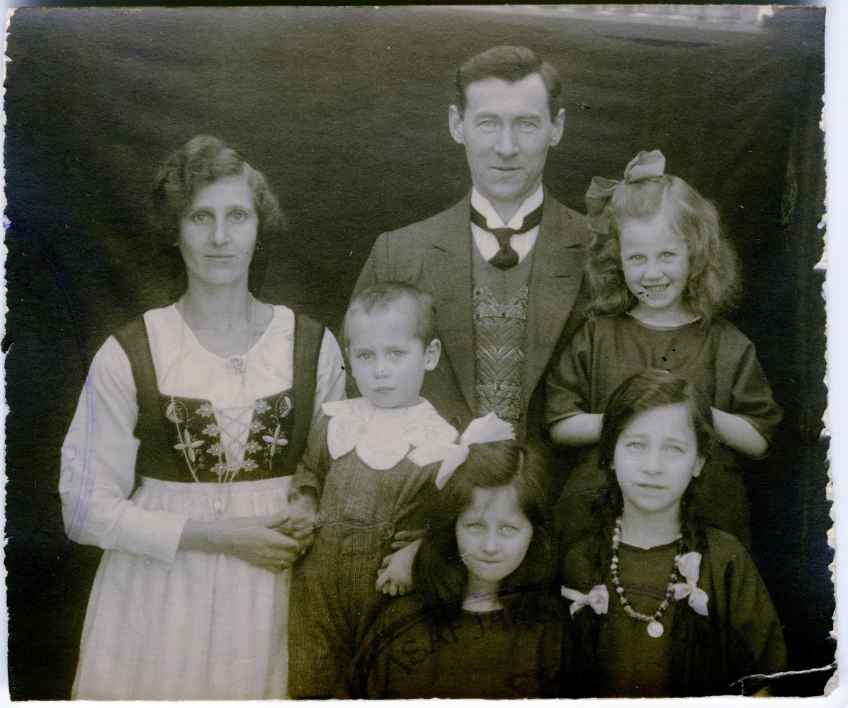 Ólafur Hjálmarsson ásamt konu og fjórum börnum, ónafngreindum.