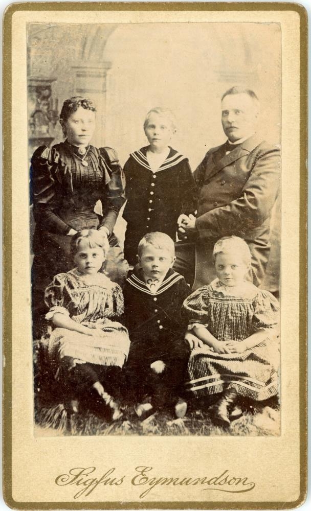Þórhallur biskup, sonur séra Björns Halldórssonar í Laufási, kona Þórhalls frú Valgerður Jónsdóttir og börn þeirra.