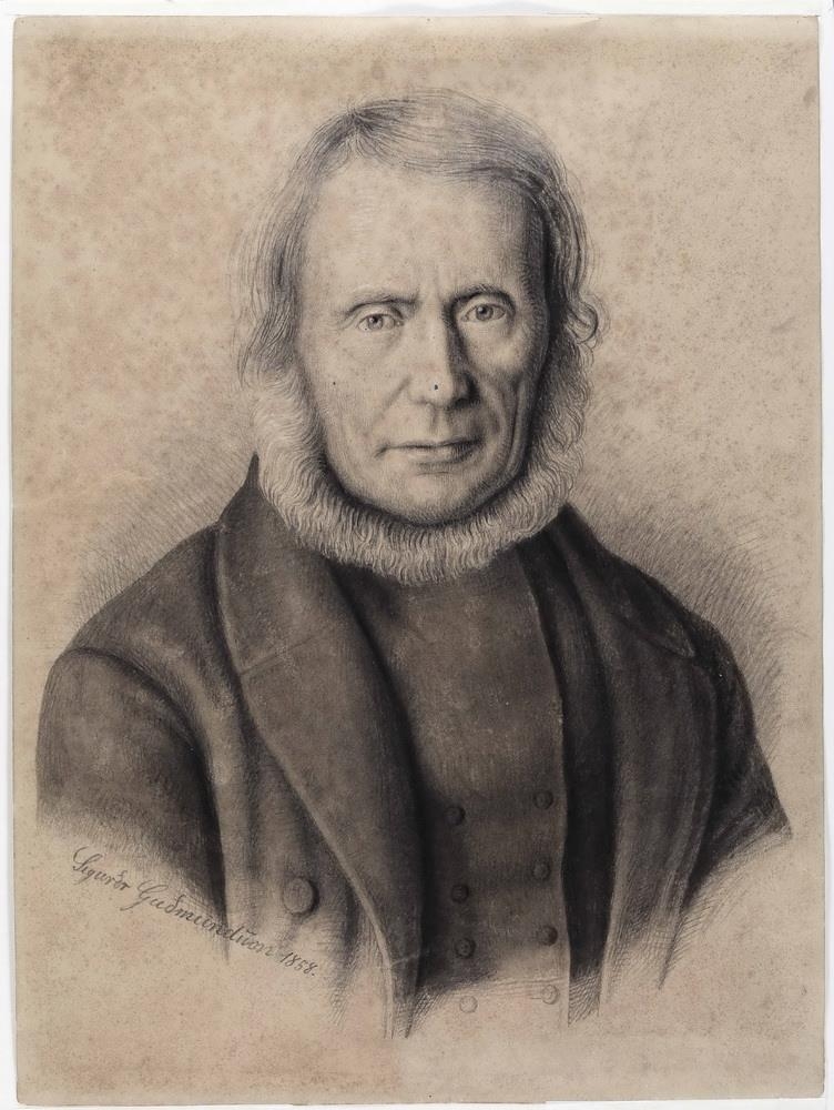 Eyjólfur Einarsson dannebrogsmaður, Svefneyjum, frummynd, blaðst. 30,5x23 cm, sett inn í gyllta umgerð br. 5,5 cm.