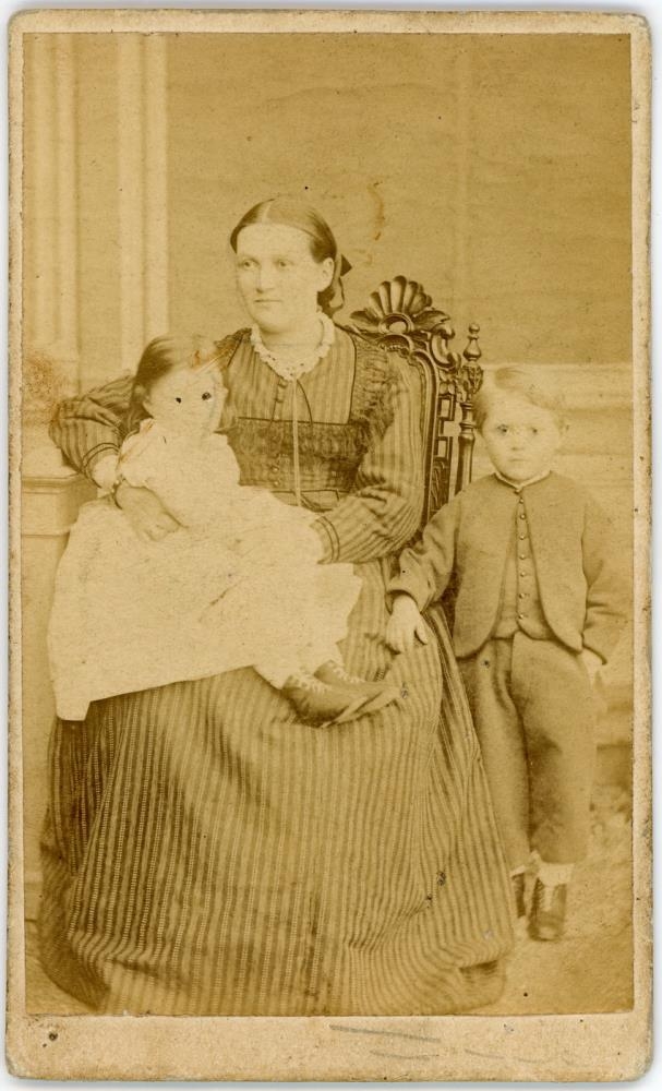 Soffía Thorsteinsson (sama og er á nr. 4689) og börn hennar tvö, Hannes og Þórunn, er síðar varð kona Franz sýslumanns Siemensens.