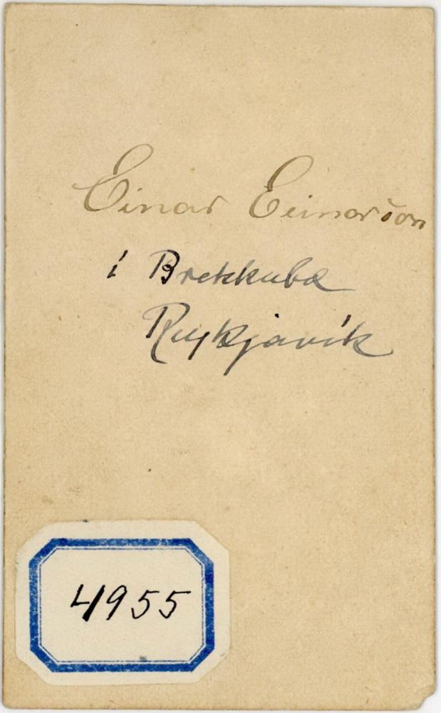 Einar Einarsson Sæmundsen frá Brekkubæ í Reykjavík. Kennari á Leirá og í Ási í Fellum. Fór til Vesturheims árið 1885, dvaldist bæði í Englandi og Vesturheimi.