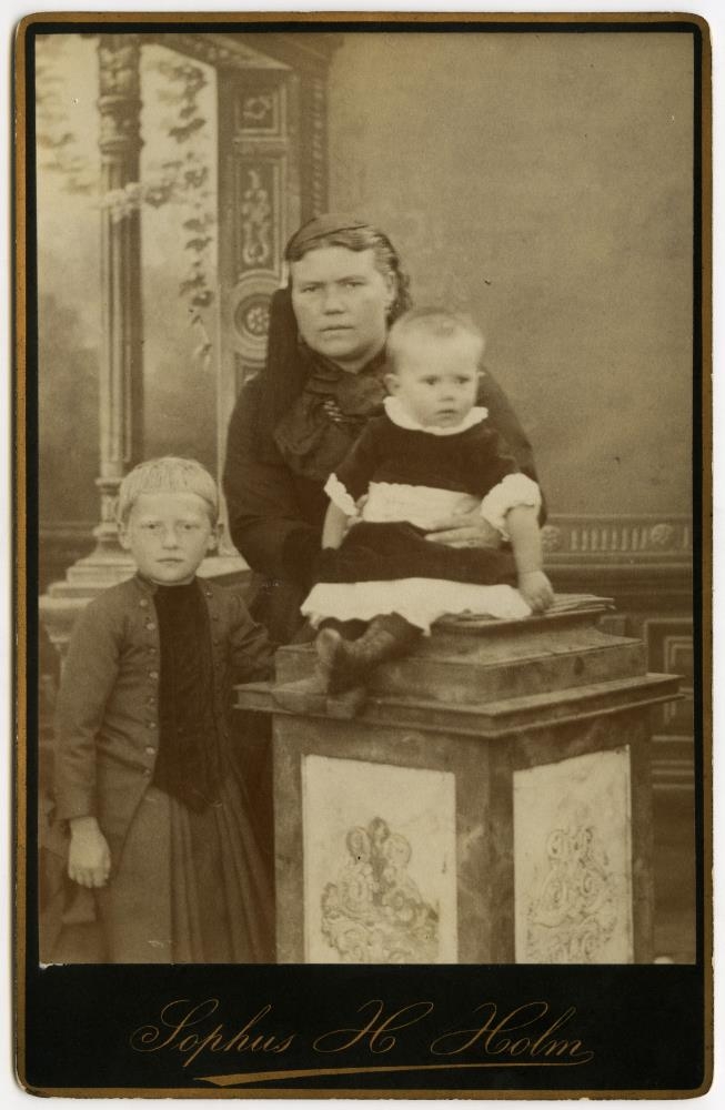 tvær á barnsaldri, Ólöf og Kristín, kona Sigurjóns bankastjóra Jónssonar.