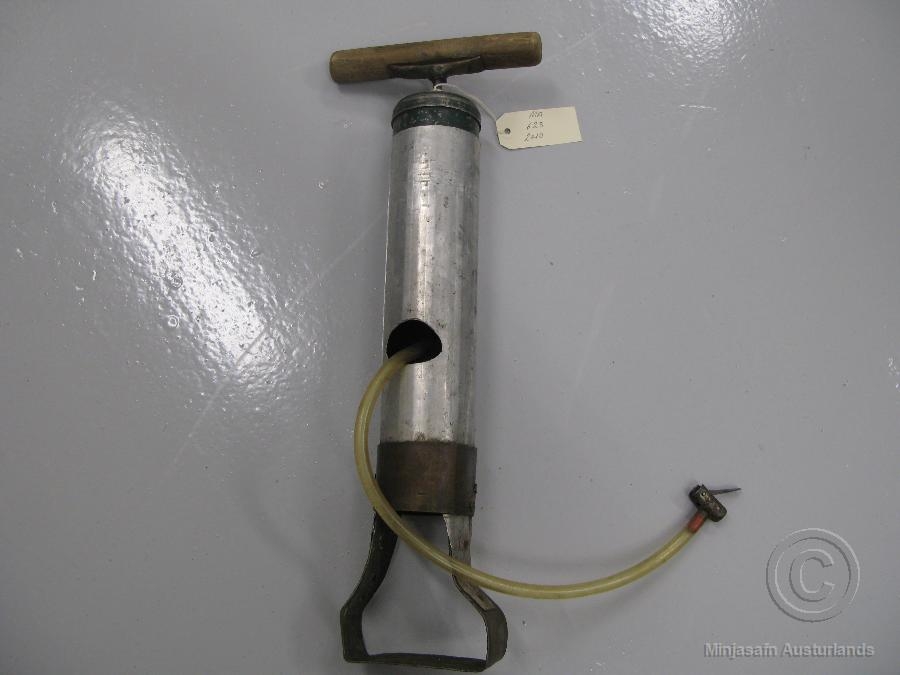 Stór og mikil smurpumpa sem er heimasmíðuð af Þorbirni Arnoddsyni, bílstjóra á Seyðisfirði. Pumpan er gerð úr álhólk og er fótur undir henni, en bulla á hinum endanum. Gat er neðarlega á hólknum og plastslanga með mótstykki á endanum til að setja upp á ventil.