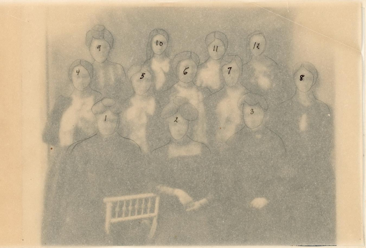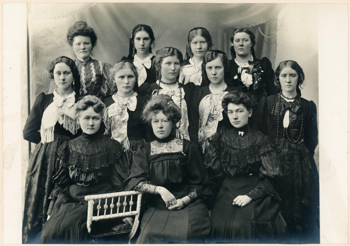 „Guðrún Jónsdóttir (1886-1918) saumakona er önnur frá vinstri í efstu röð.“ (GLH 2025)