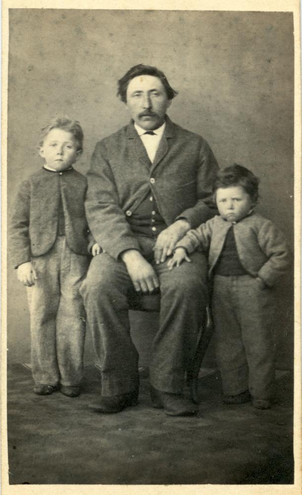 Þorvarður Helgason beykir í Keflavík og synir hans á barnsaldri Guðmundur og Þorsteinn.