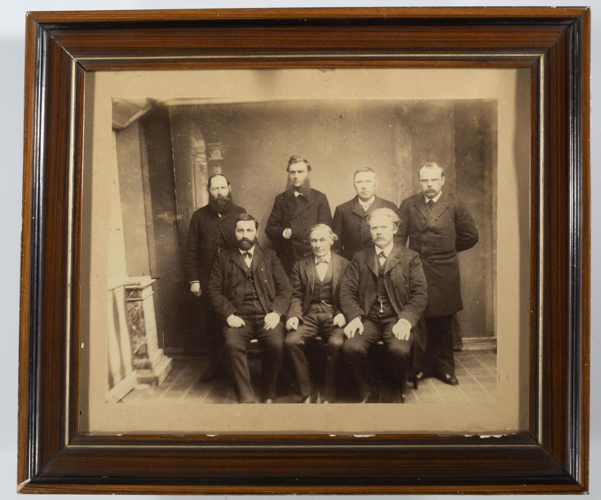Stjórnarskrárnefnd. Stjórnarskránefndin á alþingi 1891, þessir 7 menn: standandi (frá vinstri til hægri): Séra Sigurður Gunnarsson, séra Ólafur Ólafsson, séra Jens Pálsson og séra Sigurður Jensson; en sitjandi: Séra Sigurður Stefánsson, Benedikt Sveinsson og Skúli Thoroddsen. Myndin er ljósmynd, límd á spjald og er það í brúnni umgerð, stærð 24 x 28 að utanmáli, en breidd ramma 3 cm.