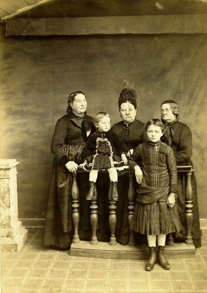 Mæðgurnar Guðrún Ólafsdóttir, ekkja Einars hattasmiðs í Brekkubæ í Reykjavík, Sæmundssonar, og dætur hennar 2, Sigríður, kona Eiríks Magnússonar, bókavarðar í Cambridge á Englandi, og Soffía, kona Sigurðar Gunnarssonar, prests að Ási í Fellum, og dætur hennar 2 ungar, Bergljót, síðar kona Haraldar prófessors Níelssonar, og Sigríður María.