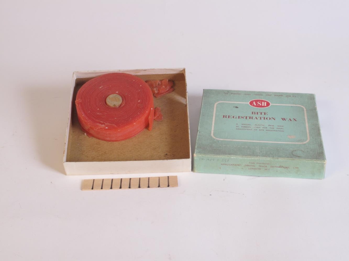 Vaxrúlla í kassa. Var notað tl að mæla bit.