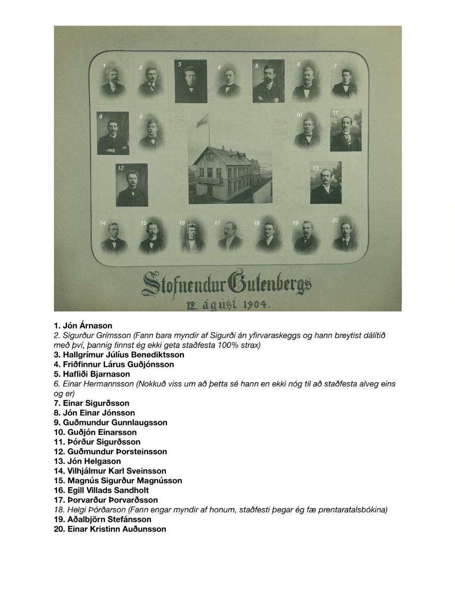 Stofnendur Gutenbergs 12. ág. 1904. Sjá nánari greiningu í fylgiskjali.
