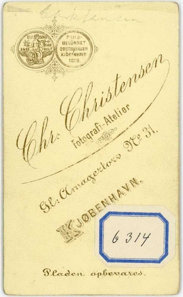 Christensen, sbr. nr. 6308. Frá frú Soffíu Claessen ( f. Jonassen). Meðstofnandi Oddfellowreglunnar á Íslandi, frá Kaupmanahöfn.