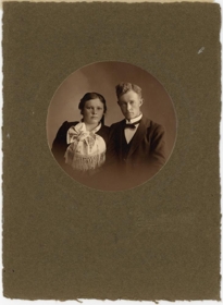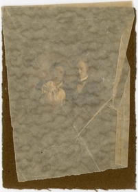 Kringlótt mynd, þvermál 7,3 cm, á ferhyrndu spjaldi, st. 16,6 x 12,2 cm.