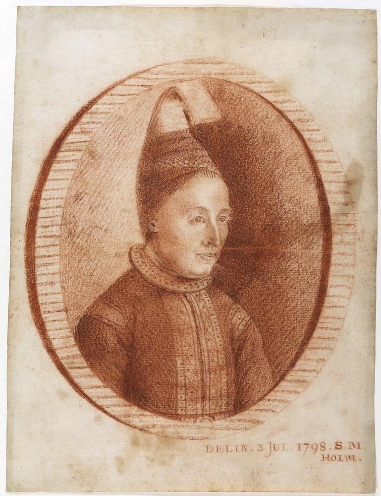 Rauðkrítarmynd af Rannveigu Filippusardóttur, kona Bjarna riddara Sigurðssonar, gerð af Sæm. M. Hólm. 3.