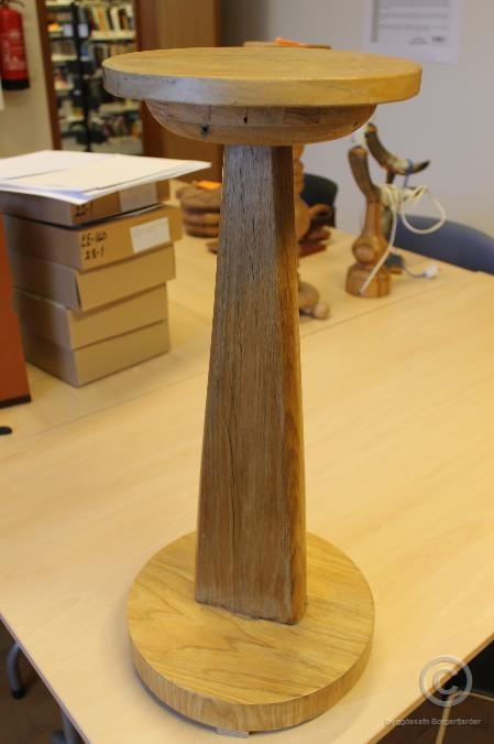 Munurinn kom til Byggðasafnsins 13. desember 2011 ásamt níu öðrum munum gerðum af Hallsteini Sveinssyni (07.07.1903-21.11.1995). Afhending/gefandi: Hallsteinn Sigurðsson bróðursonur Hallsteins eldra. Móttekið og skráð: Guðrún Jónsdóttir forstöðumaður.