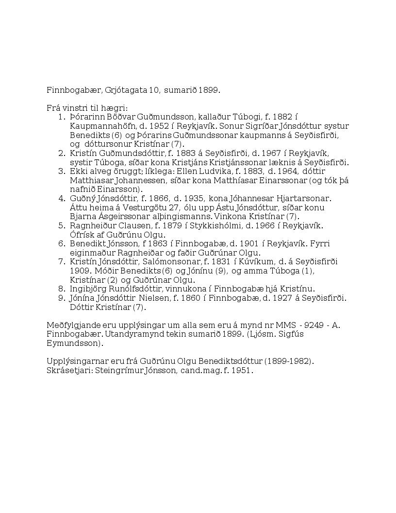 „Finnbogabær, Grjótagata 10, sumarið 1899.