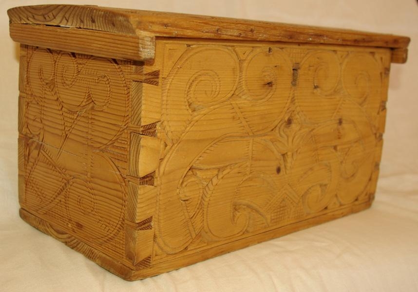 hliðum og loki. Skurðstíllinn er dæmigert teinungamunstur sem fyllir