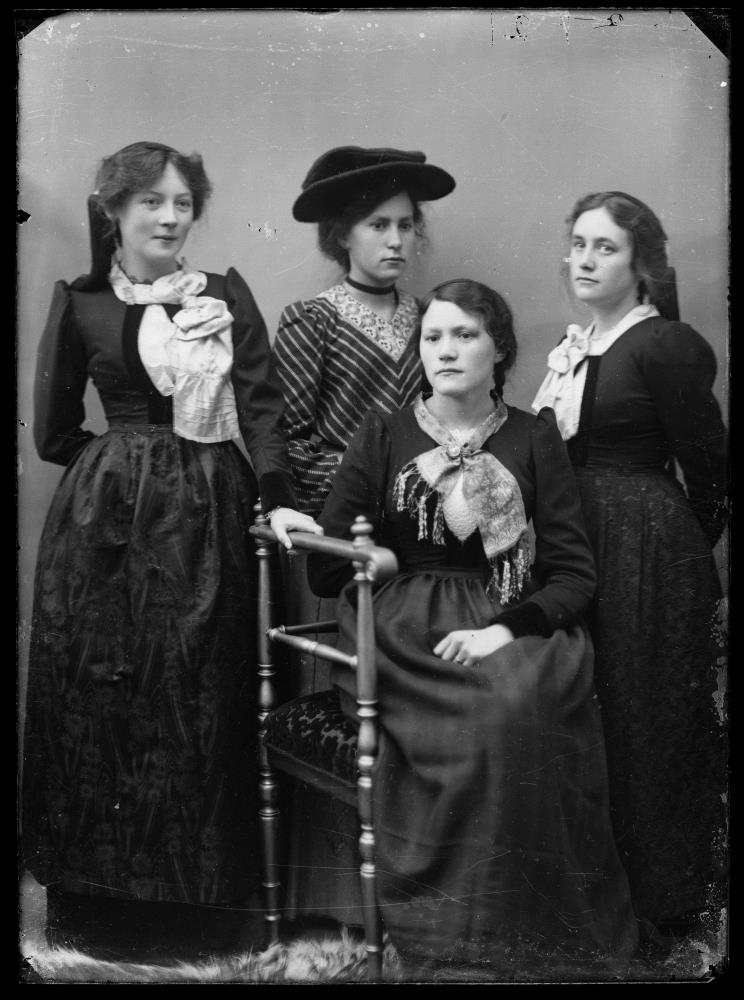 4 saman. Laufey Valdimarsdóttir rithöfundur, fyrst f. v., Jóhanna Erlendsdóttir önnur f.v. (með hatt), Ingibjörg Erlendsdóttir Ahrens kennslukona þriðja frá v. (sitjandi), Ingibjörg Sigurðardóttir fjórða f.v.