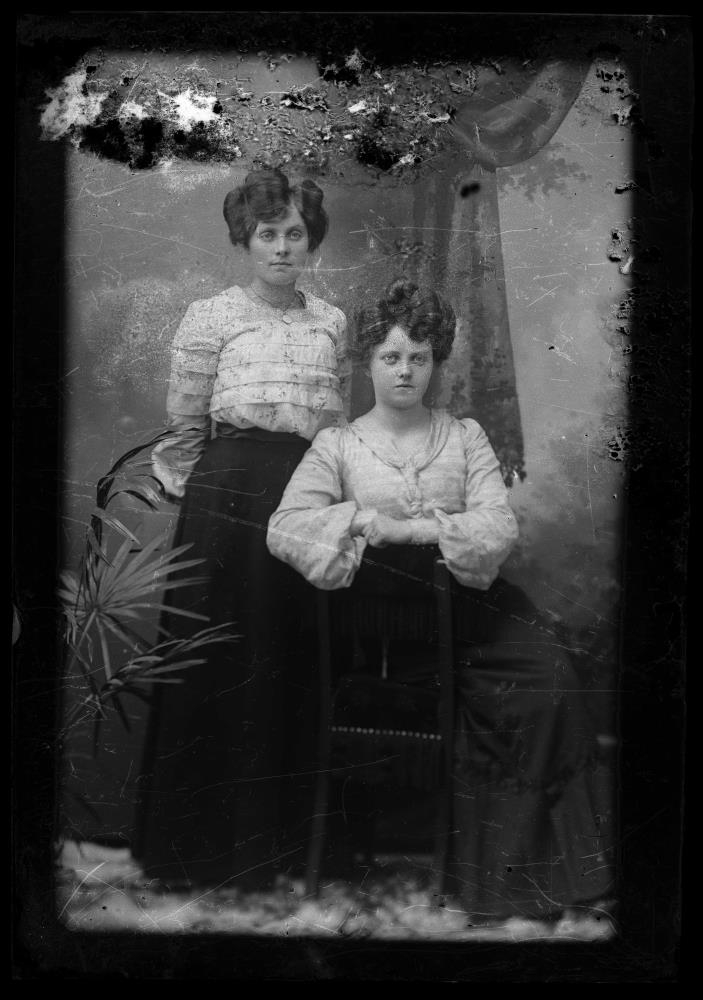 „Stelpan til hægri er Kristín Petrína Biering (9. maí 1886 - 28. maí 1953). Giftist Peter Petersen (Bíópetersen).“ (SBBP 2021)