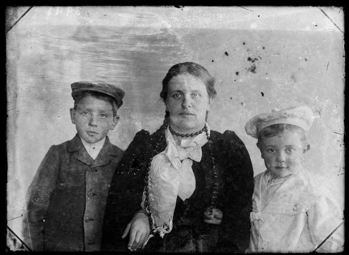 3 saman. Kona með drengi. Rakel Ólafsdóttir frá Hábæ í Þykkvabæ. Eiginmaður hennar var Jón Magnússon frá Biskupsstungum, þau hjónin ráku saman mikið bú á Elliðavatni um tíma. Með henni eru sennilega tveir synir hennar, óvíst hverjir.