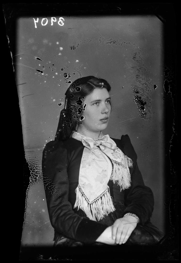 „Sigríður Guðnadóttir, líklega sú sem var fædd 17. sept. 1885 og látin 13. jan. 1963. Sami gefandi er af öðru eintaki af þessari mynd og mynd af Margréti Guðnadóttir (1884-1968) og Margrét átti systur að nafni Sigríður. Þetta er líklegast sú.“ (SBBP 2021)