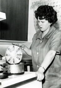 Myndin sýnir konu steikja laufabrauð um 1960-1965. (Þjóðminjasafn Íslands. Lpr-2005-98)