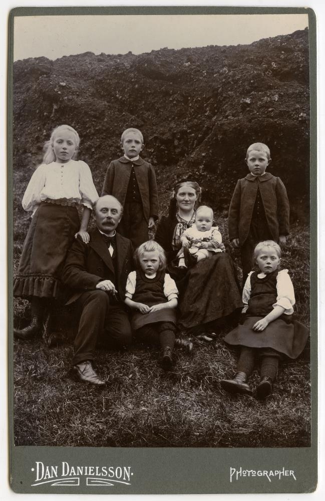8 saman. Séra Magnús Þorsteinsson prestur að Mosfelli, Mosvellssveit, kona hans Valgerður Gísladóttir, bónda á Kvískerjum og b. þeirra: Kristín, Bergþór Njáll og Þorsteinn. Ástríður, Ólafur í kjöltu móður sinnar og.....?