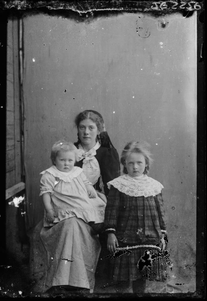 „Þuríður Skúladóttir, Svanborg Signý Jóhannesdóttir og Una Skúladóttir á Gillastöðum í Laxárdal. Myndin er tekin 1908.“ (VE 2020)