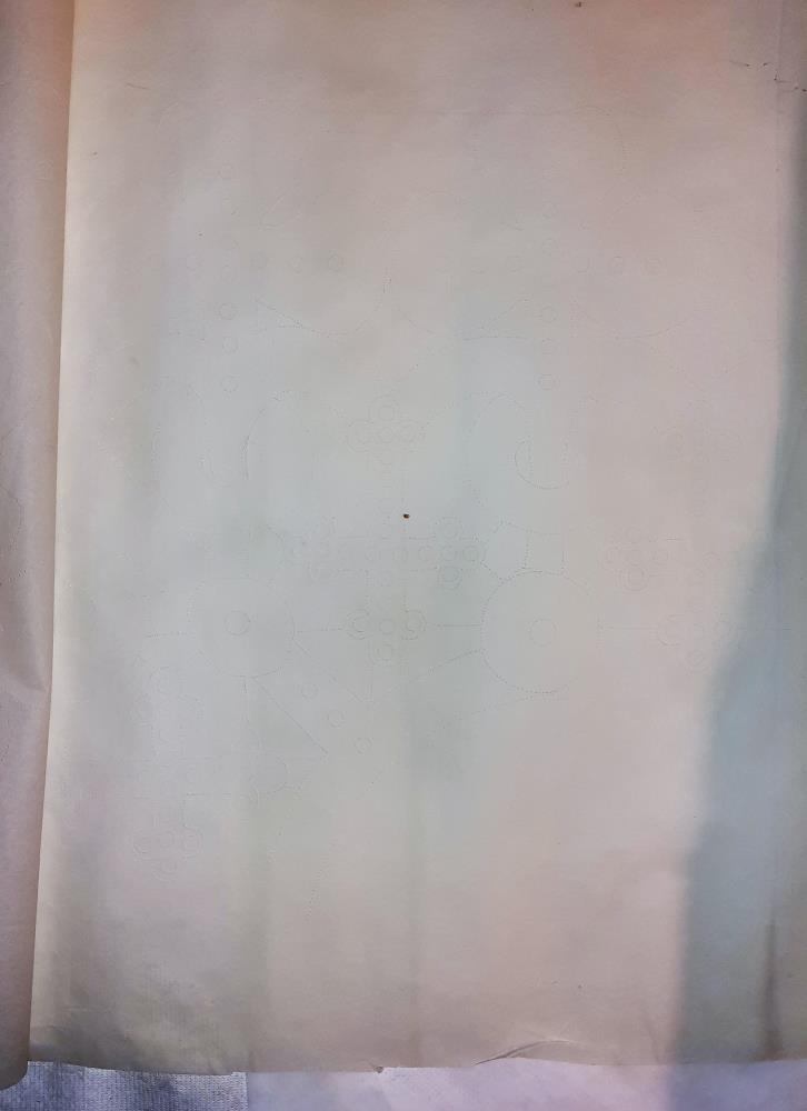 Uppdráttur af mynstri á altarisdúk. Mynstrið gatað á smjör- eða sníðapappír.