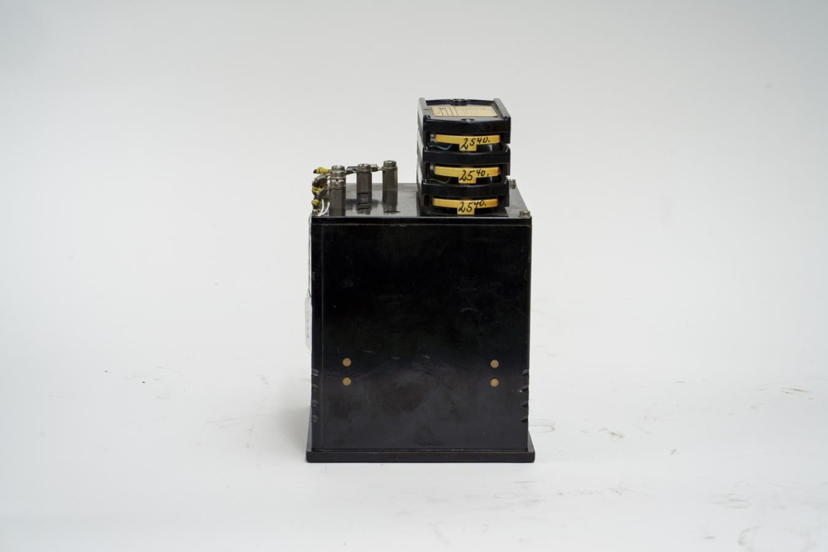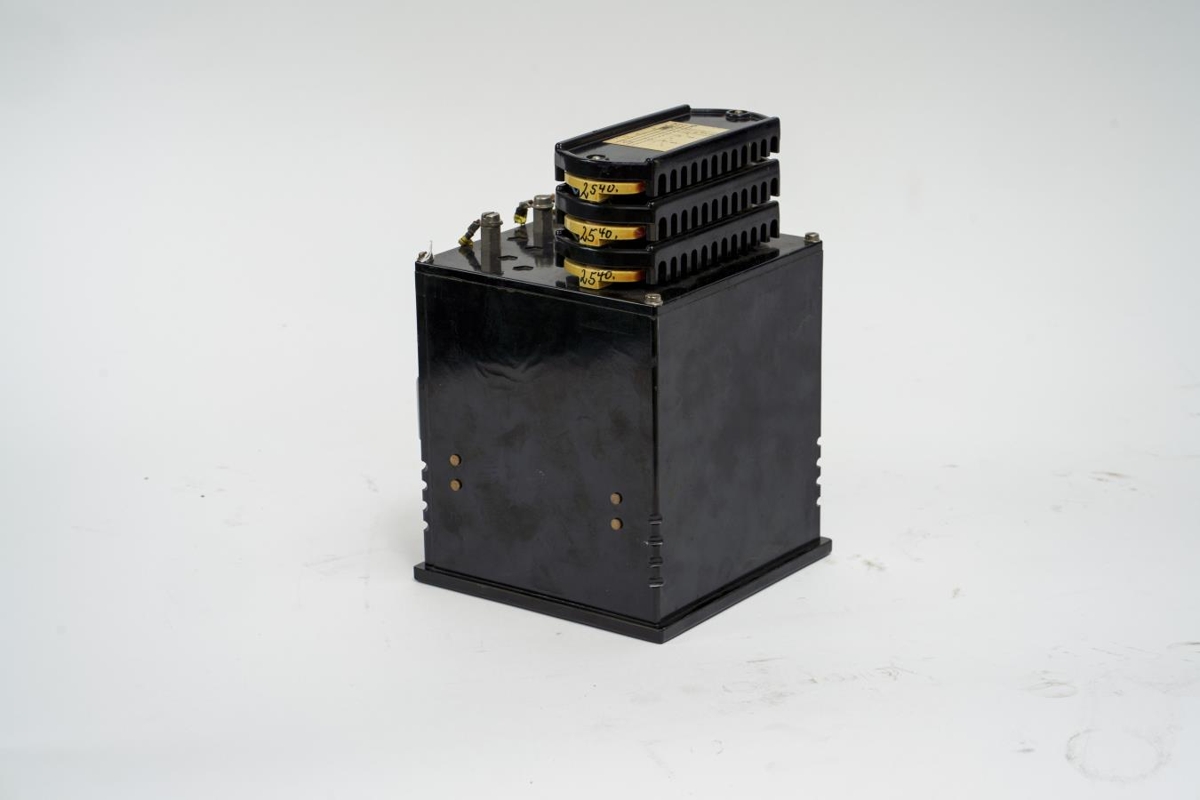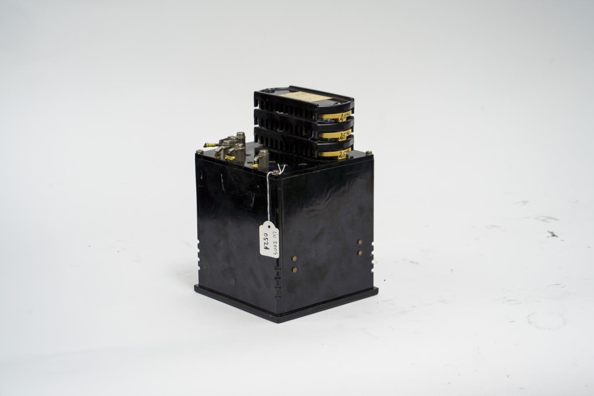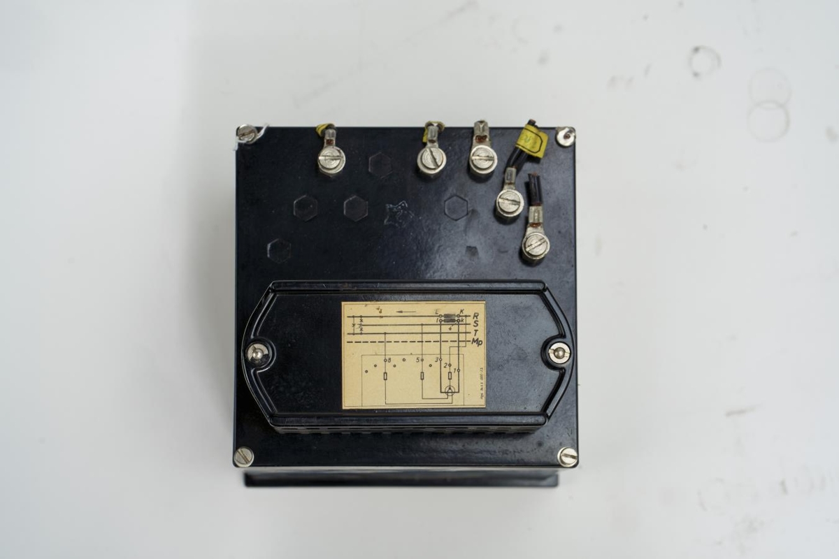 Kassi sem tekin hefur verið úr tækjasamstæðu/töflu. Framan á er gluggi og undir honum mæliskífa. Aftan á kassanum eru tengi og annar tækjabúnaður.